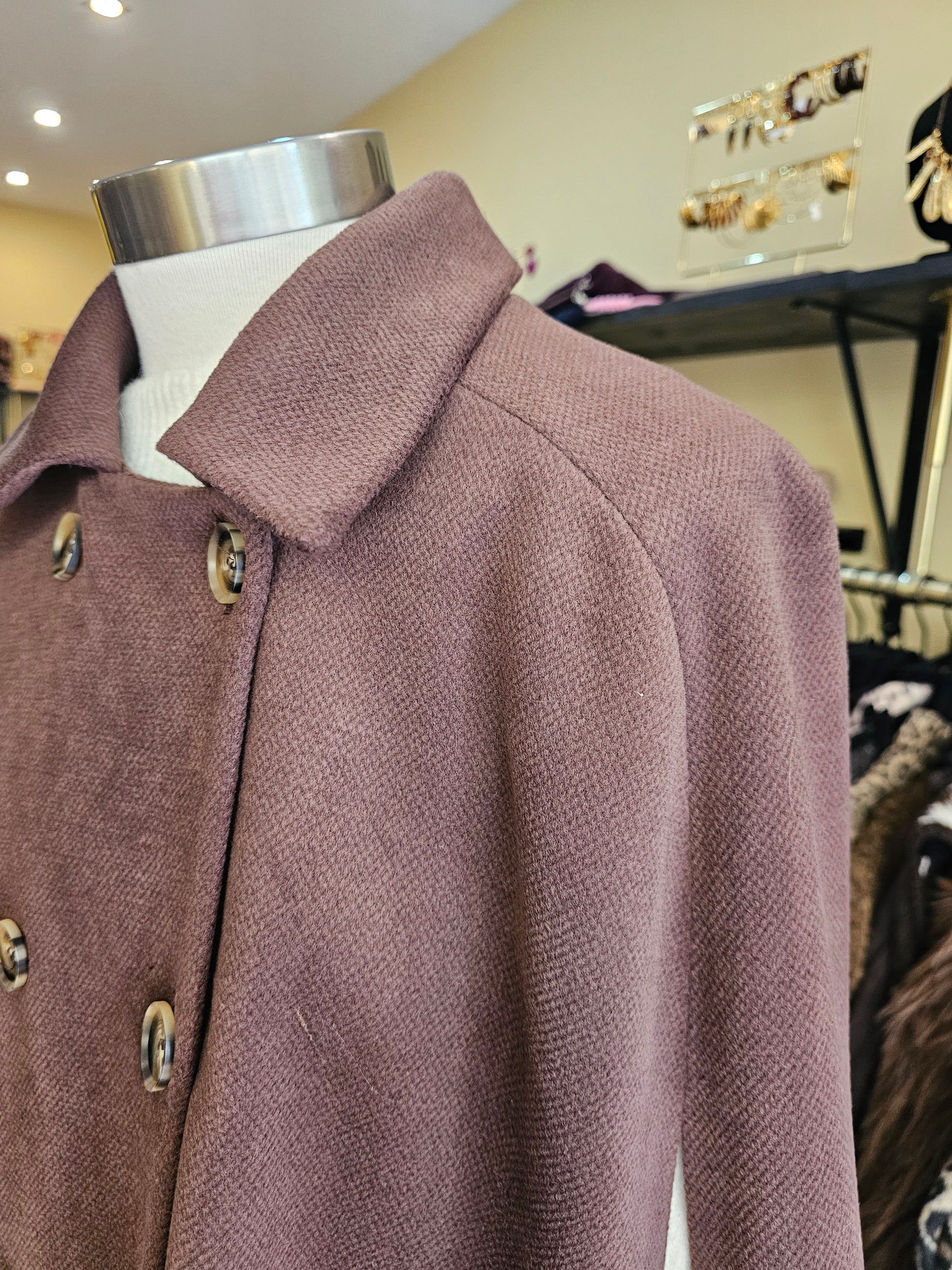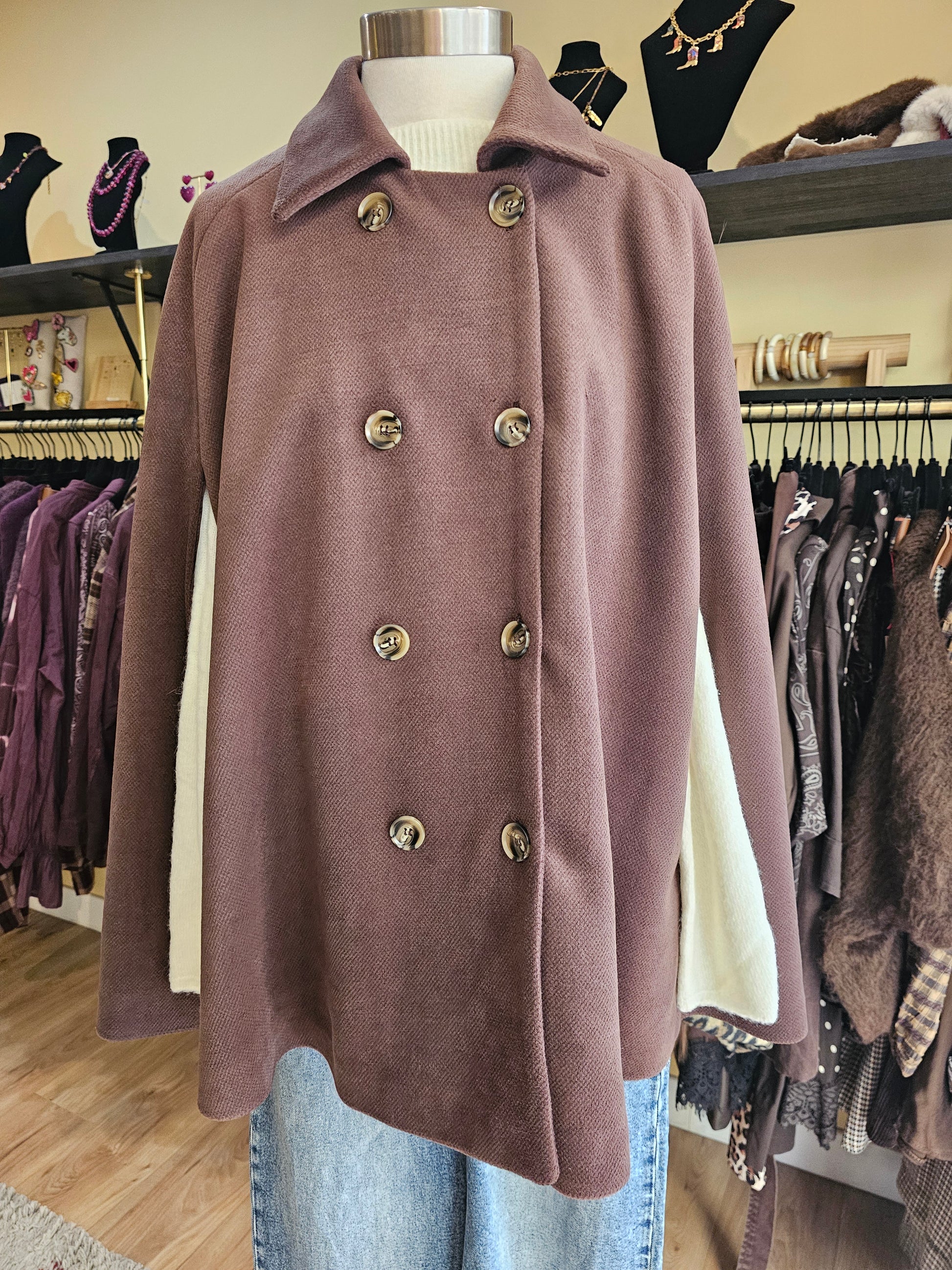 Cape fluide couleur chocolat double boutonnage et col chemise.