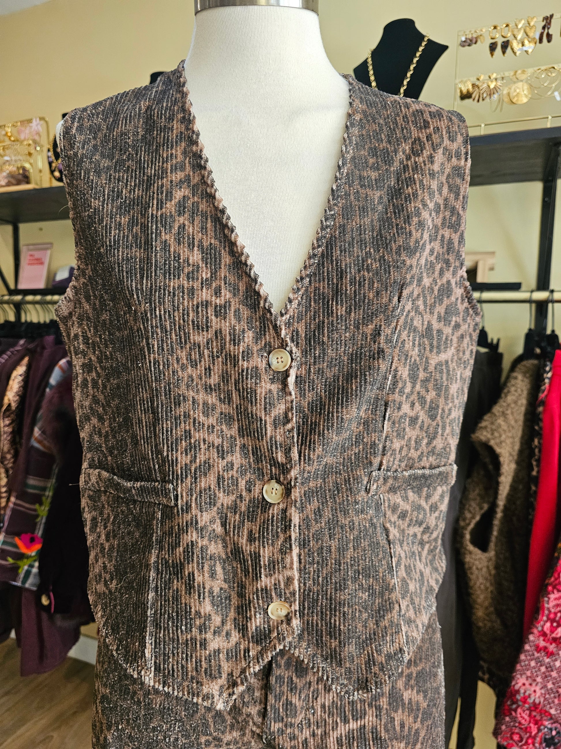Gilet sans manche velours leopard, taille unique