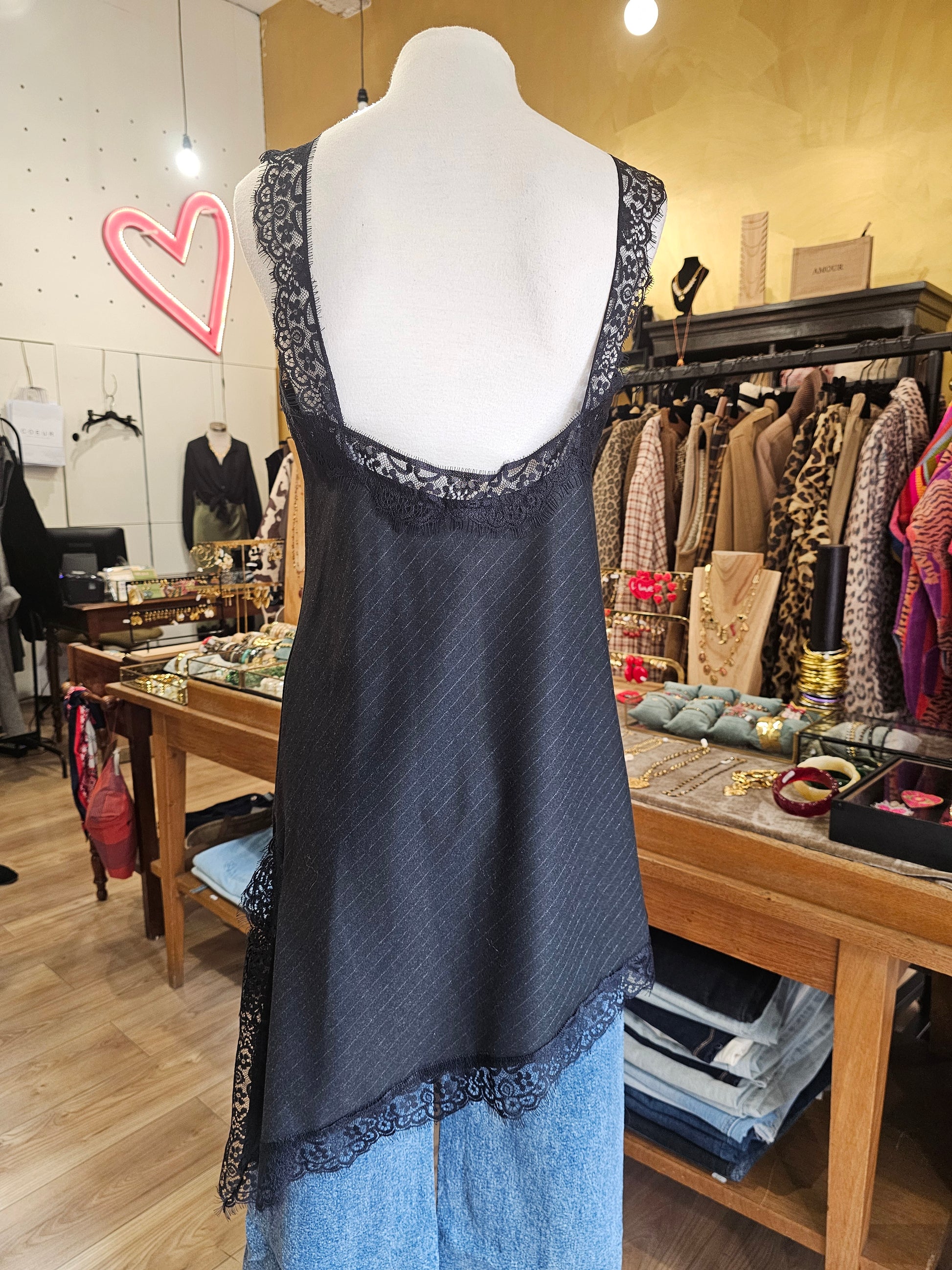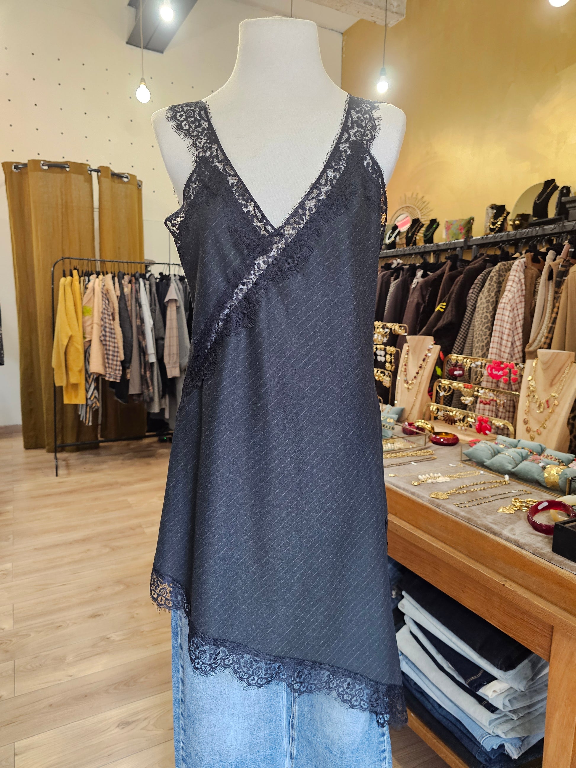 Nuisette dentelle anthracite et noir taille unique Johanna Paris