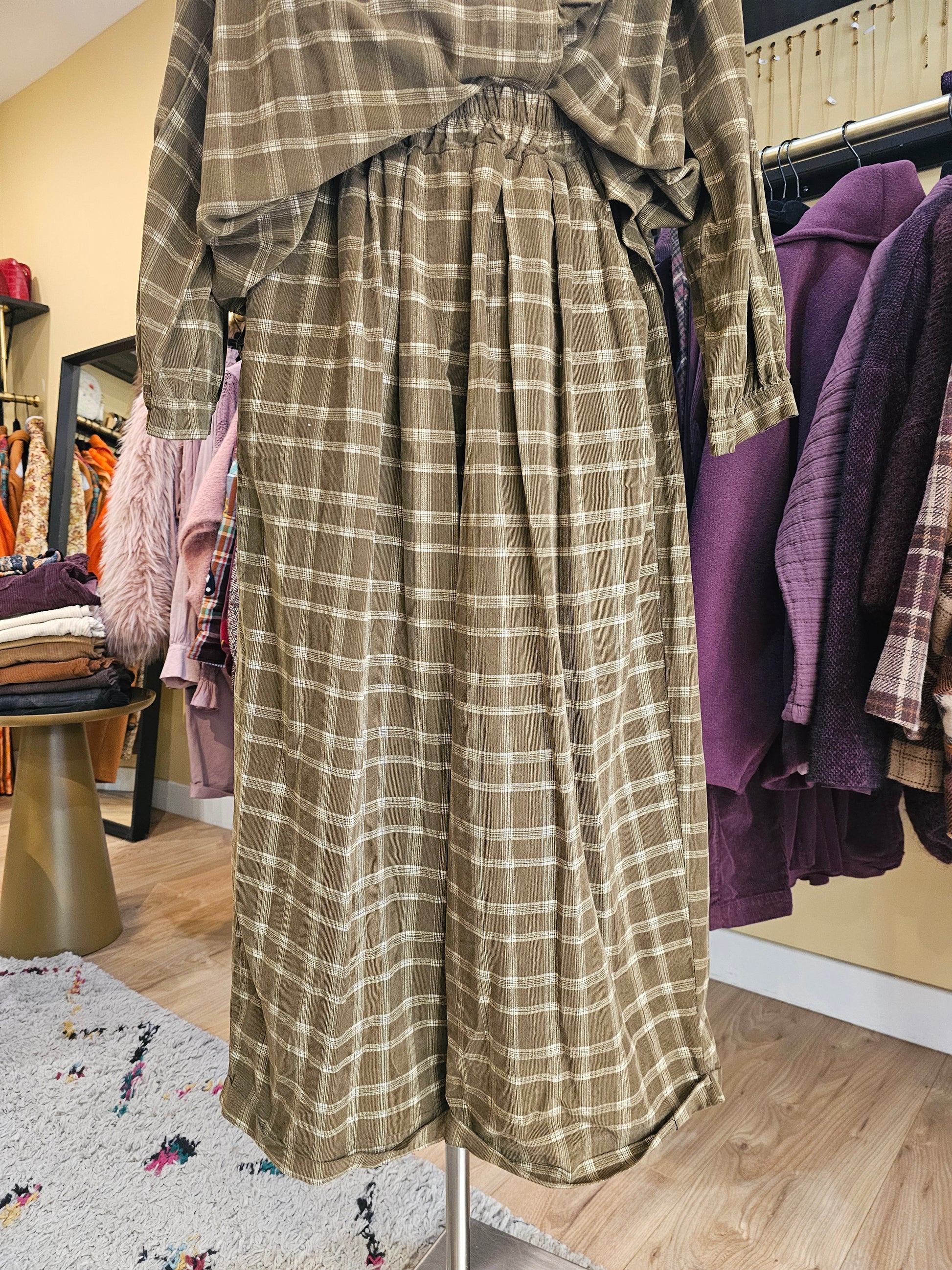 Pantalon magique 2 de Johanna Paris, à carreaux kaki et écru en velours fin