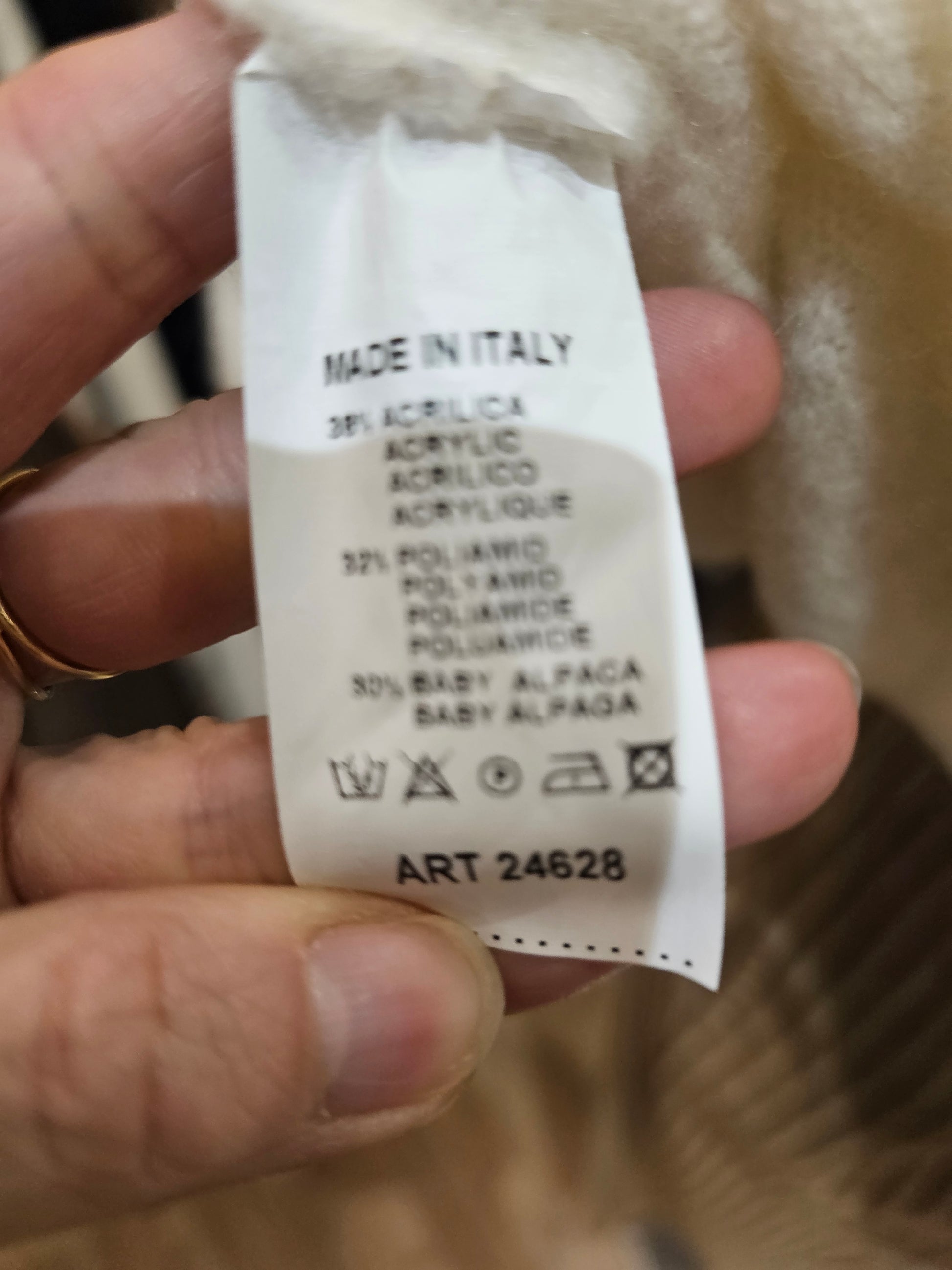 Composition : 38 % acrylique, 32 % polyamide, 30 % baby alpaga