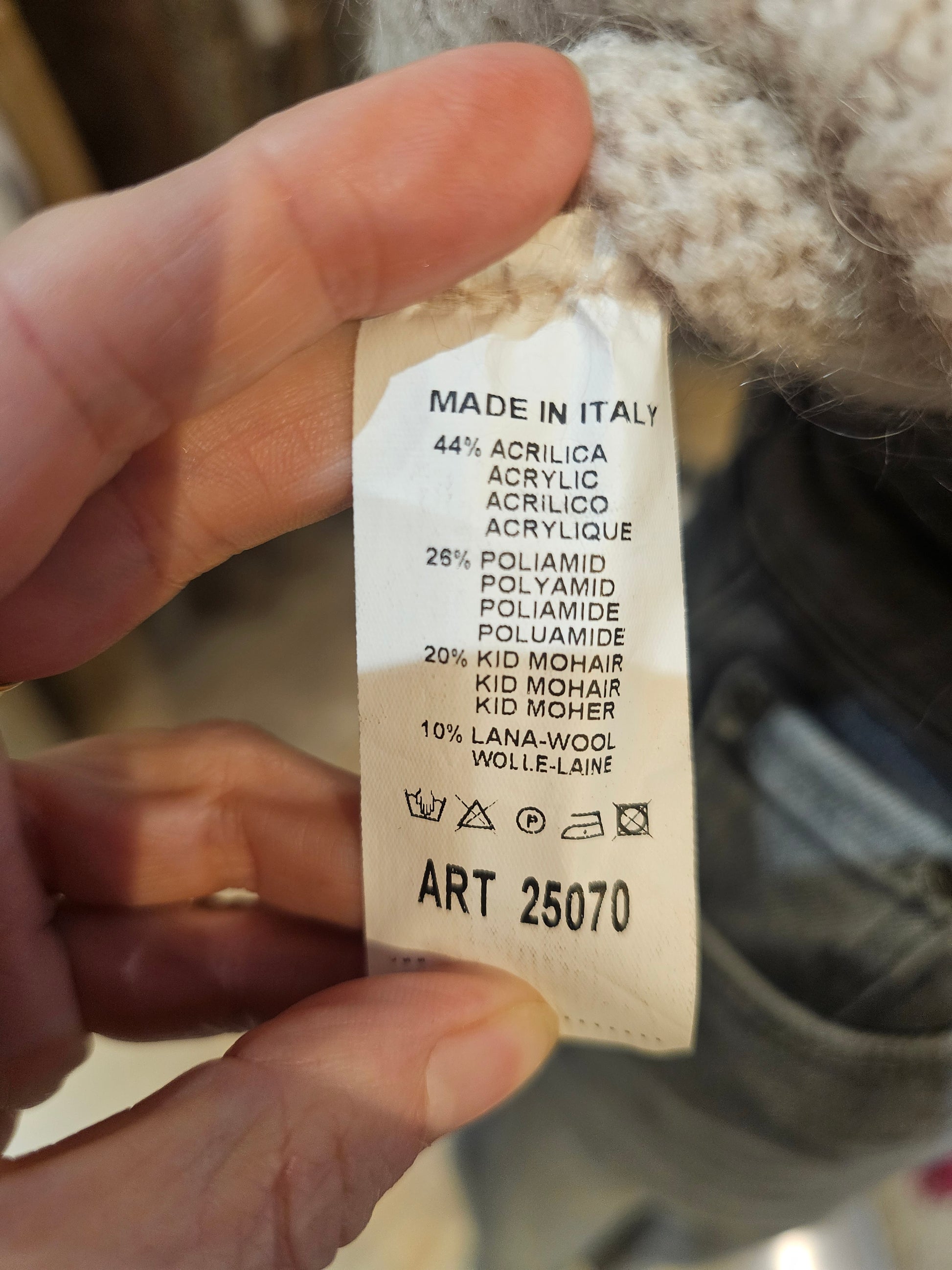 Composition : 44% acrylique – 26% polyamide – 20% kid mohair – 10% laine