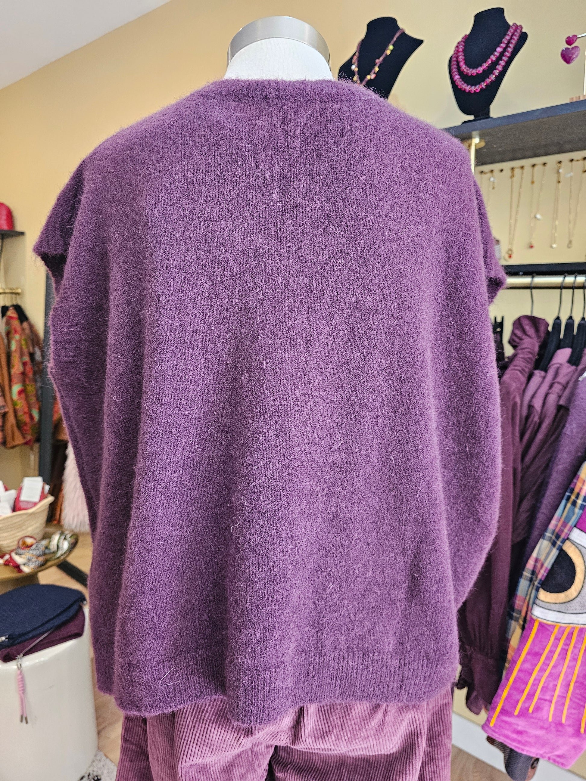 Pull sans manche prune