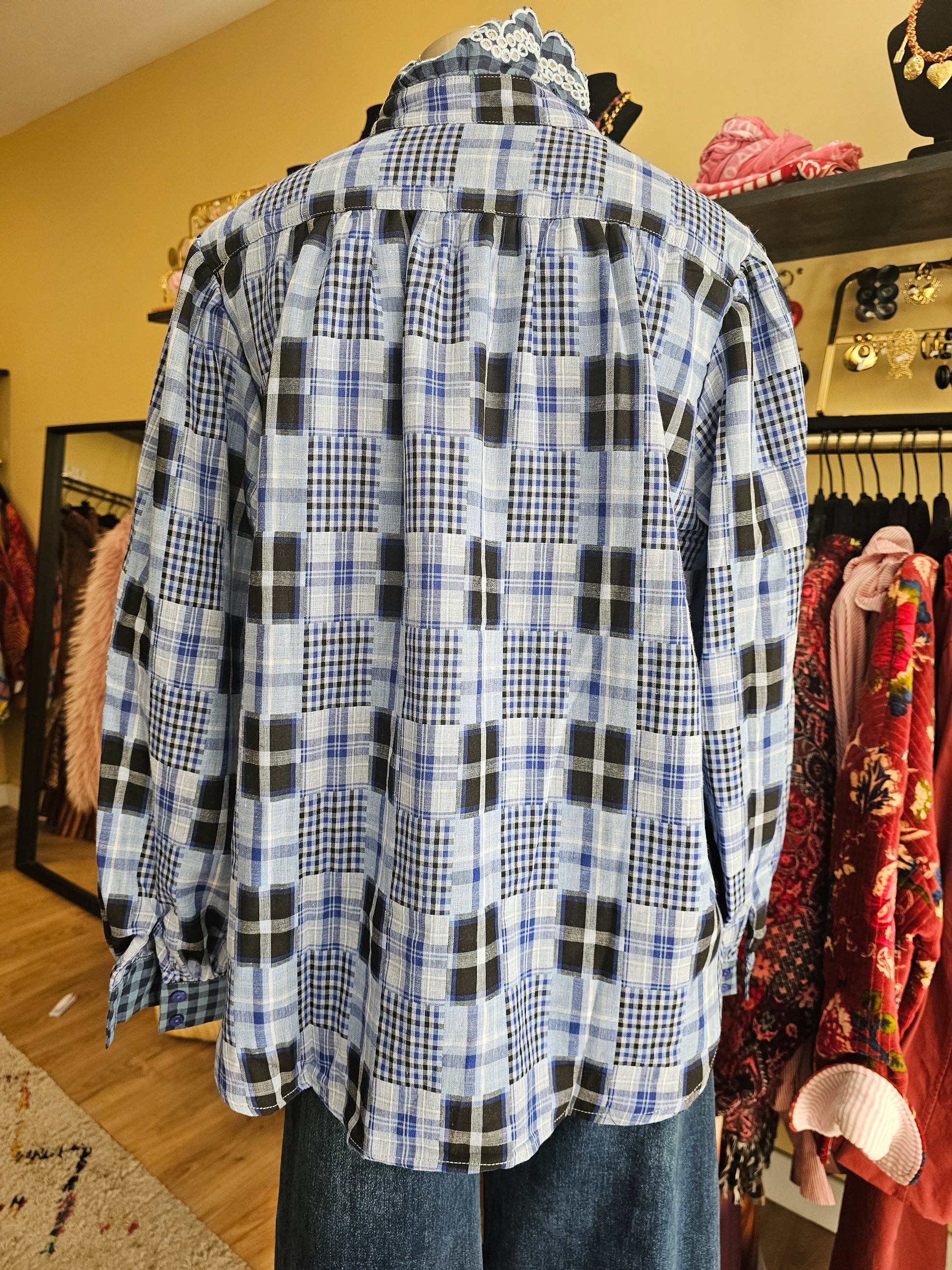 Chemises à carreaux noirs et bleus en coton, polyester et viscose