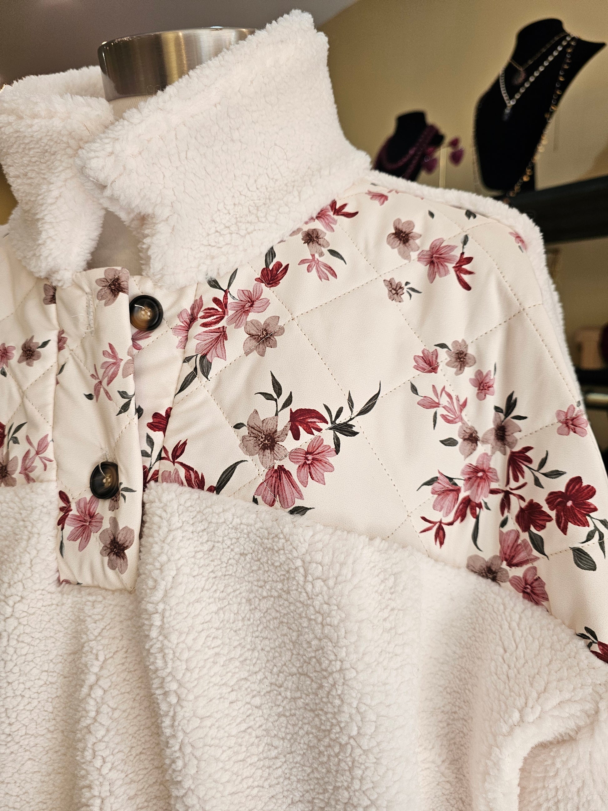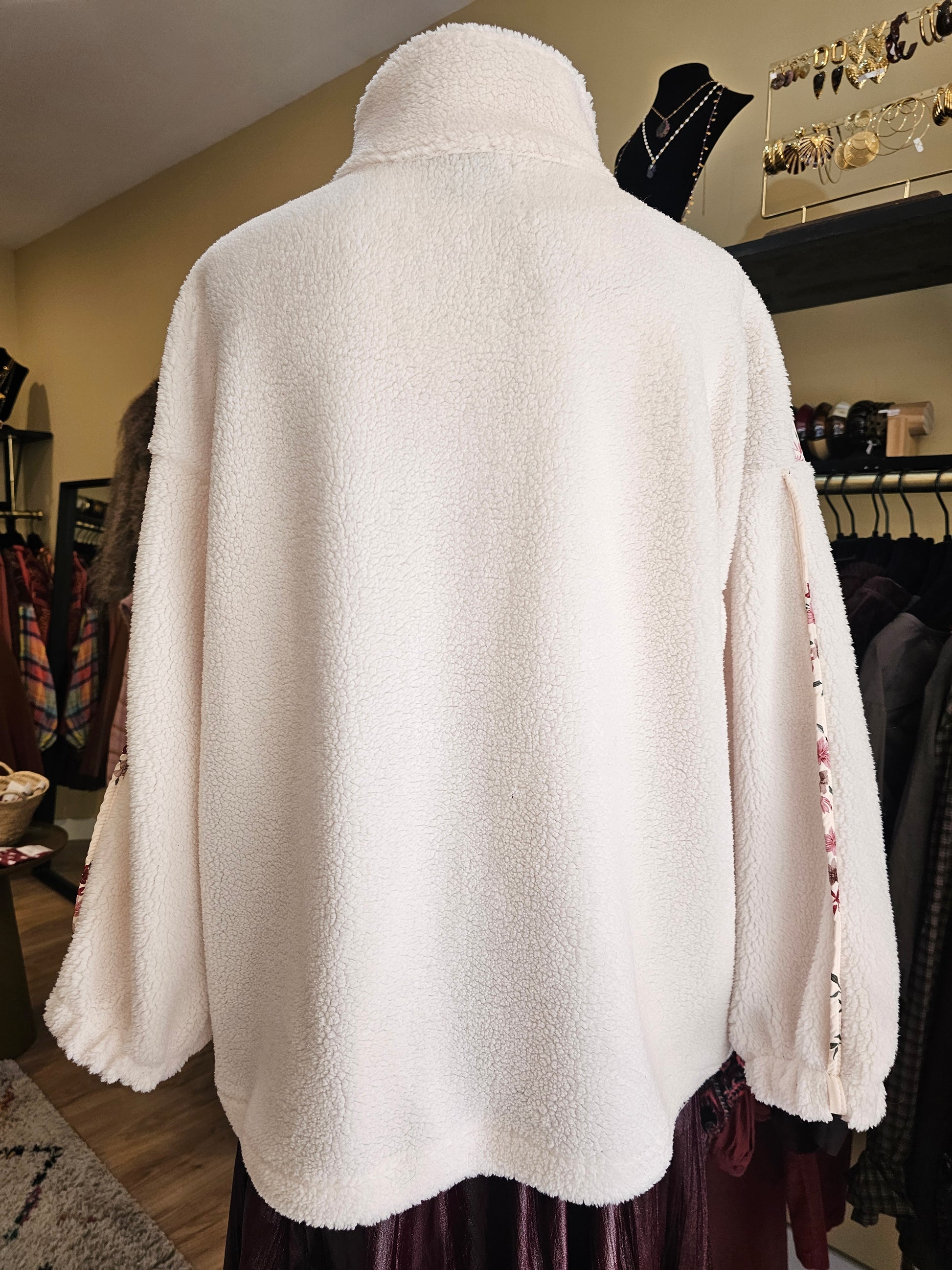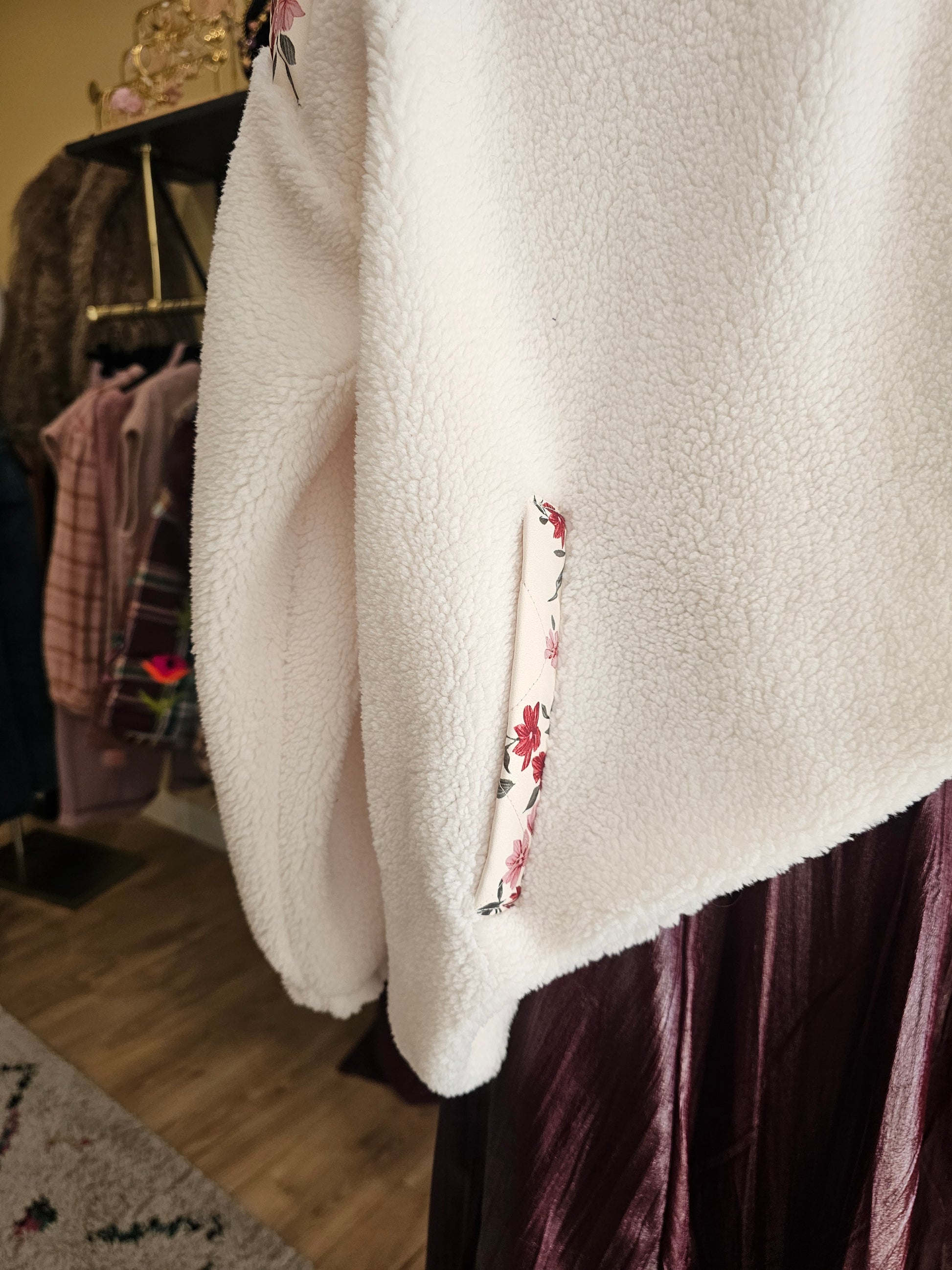 Polaire écrue avec empiècement tissu petites fleurs, taille unique
