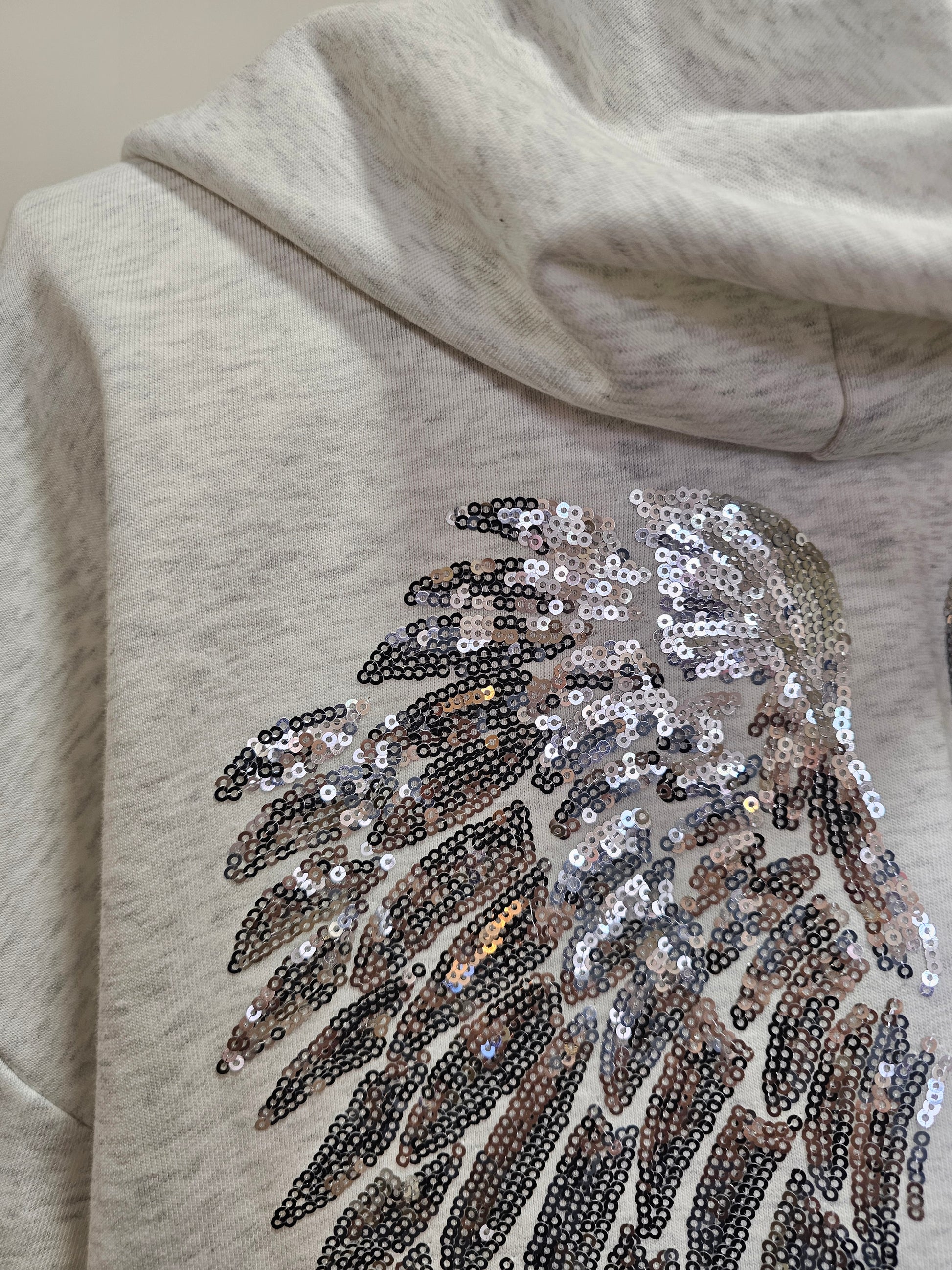 Sweat en coton avec capuche, poche kangourou et motif ailes en sequins au dos.