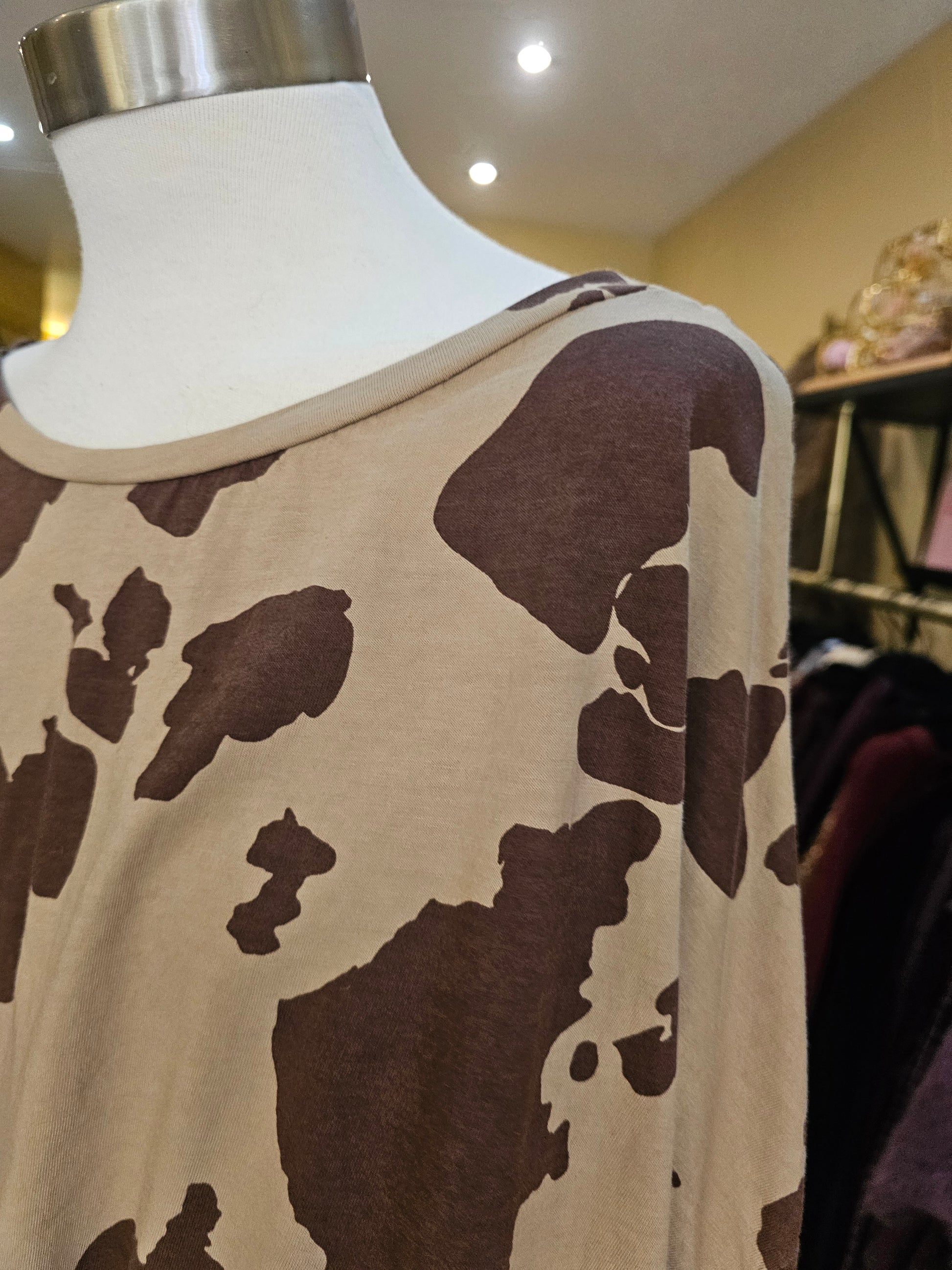Imprimé abstrait façon taches, dans des tons beige et chocolat.
