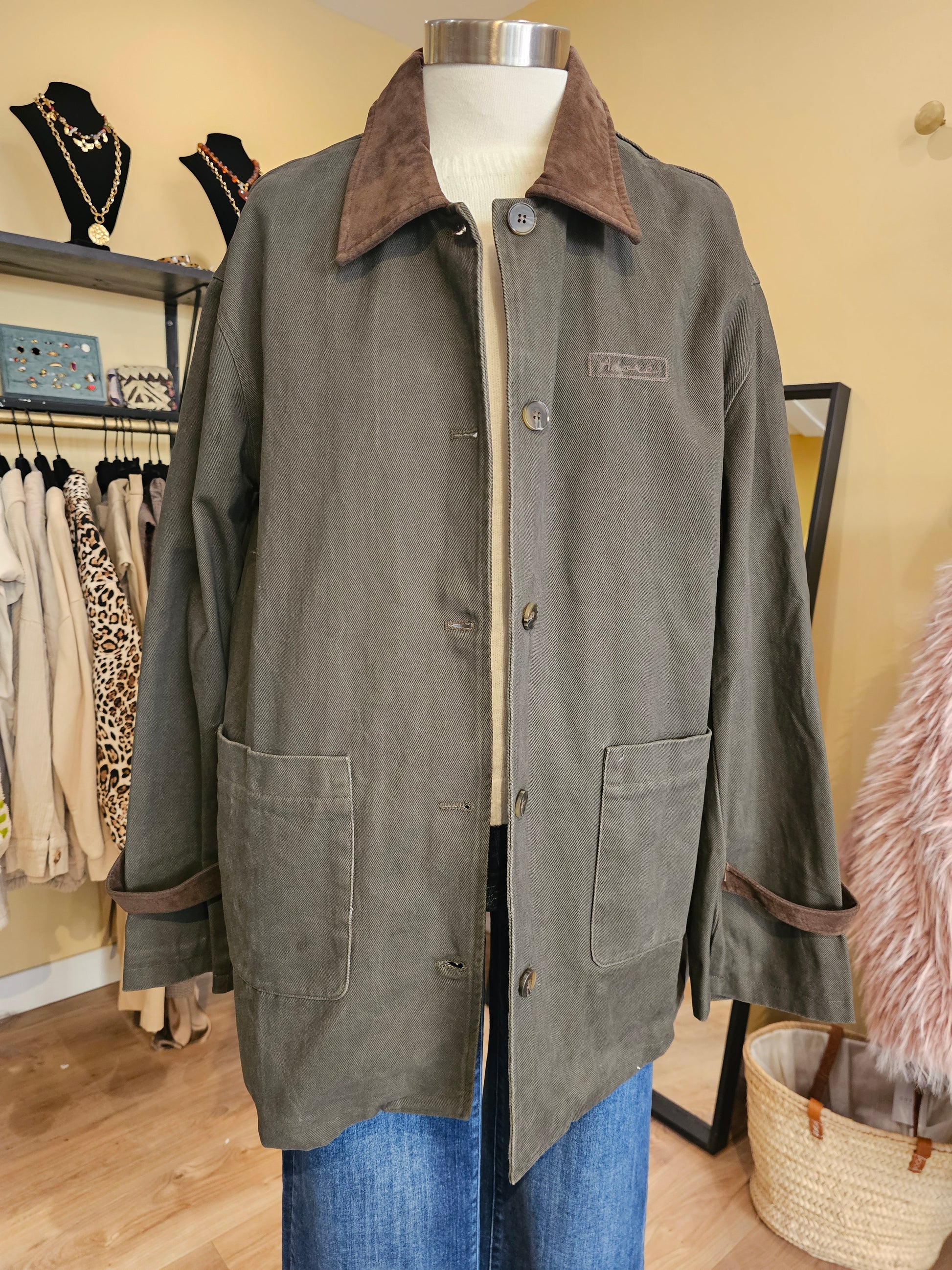 Veste de classe kaki col velours chocolat